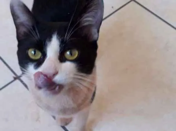 Apareceu no meu condomínio, parece ter dono, está bem cuidado. Só está sujo porque aparentemente está a vários dias na rua. Dócil e carinhoso. Estou cuidando temporariamente.