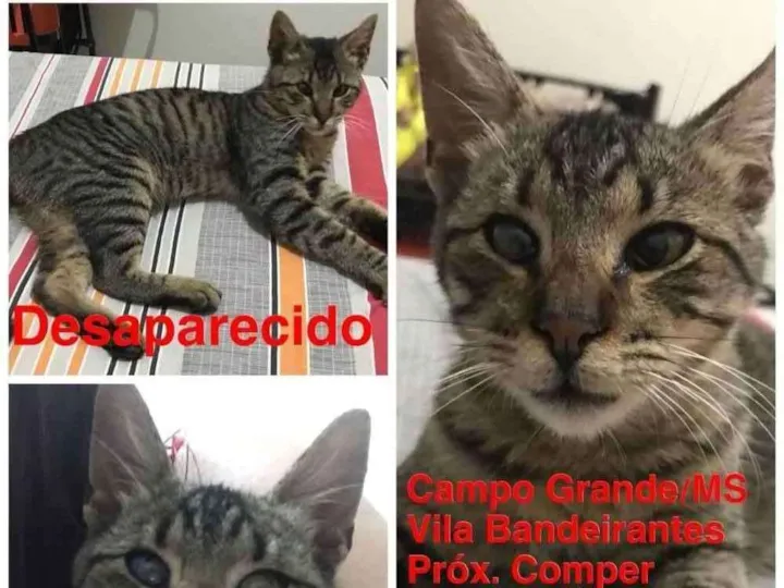 O Junior fugiu de casa no dia 14/07/2018, na Vila Bandeirantes, imediações do Comper Brilhante, Rua Tiradentes e Padaria Empório do Pão. Ele tem cerca de 8 meses, porte pequeno, castrado, rajado e ...