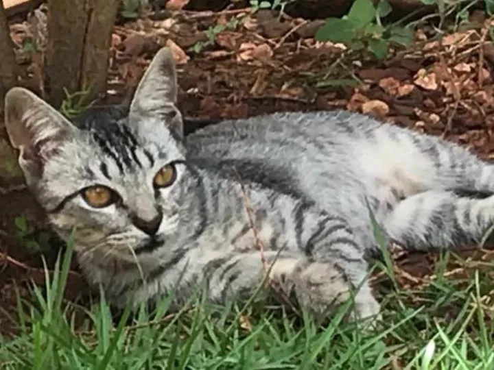 Pelagem cinza rajada, olhos cor de mel, muito mansinho, desapareceu de casa perto do Fort Atacadista da Rua Marques de Lavradio no bairro Jardim São Lourenço. Foi visto na região, mas não conseguimos encontrar.