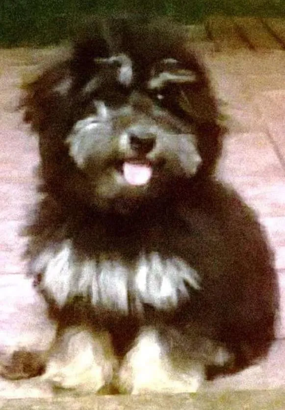 SRD de pelo longo, bem parecida com poodle. Tem palagem preta, com o focinho, peito, patas e sobrancelhas brancas, mesclas em toda a pelagem. Esta tosada. Super dócil, brincalhona. Amamos nossa pqna e a queremos conosco.