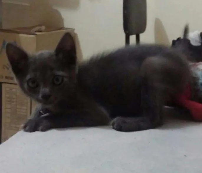 FILHOTINHA DE GATO PELAGEM CINZA CHUMBO, DEVE TER UNS 2 MESES NO MÍNIMO, JA TOMA LEITE E COME RAÇÃO, APARECEU AQUI EM CASA, E NAO POSSO FICAR COM ELA, PRECISO QUEM ALGUEM ADOTE ELA URGENTE, NAO POSSO FICAR COM ELA POR MUITO TEMPO.