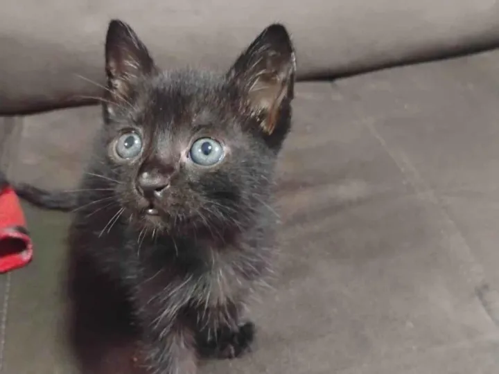 Conheça o Trovão, um adorável gatinho macho SRD-ViraLata com menos de dois meses de idade. Ele é pequeno, de pelagem preta brilhante e já está vermifugado, pronto para encontrar um novo lar cheio de amor. Trovão é a combinação perfeita de carisma e doçura, tornando-se um companheiro ideal para toda a família.