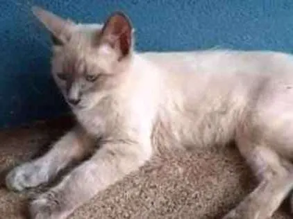 Ele é cinza claro nas orelhas e no rapinho e no focinho e nas patas e o corpo é branco acizentado, ele tem uma mania de ficar mamando nas cobertas e ele é muito carinhoso e gosta de ficar brincando...