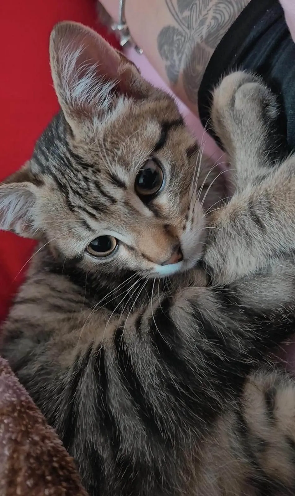 Está à procura de um companheiro felino adorável? Conheça este gatinho de apenas alguns meses, que promete encher sua casa de alegria e carinho. Ele possui uma bela pelagem rajada, muito característica e charmosa.