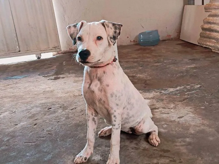 Ela uma porte grande Pitbull com American bullying docio ela tá com 6 messes de vida vacina as 4 vascaína e tbm a de raiva ,já dei o comprimido ante carrapato