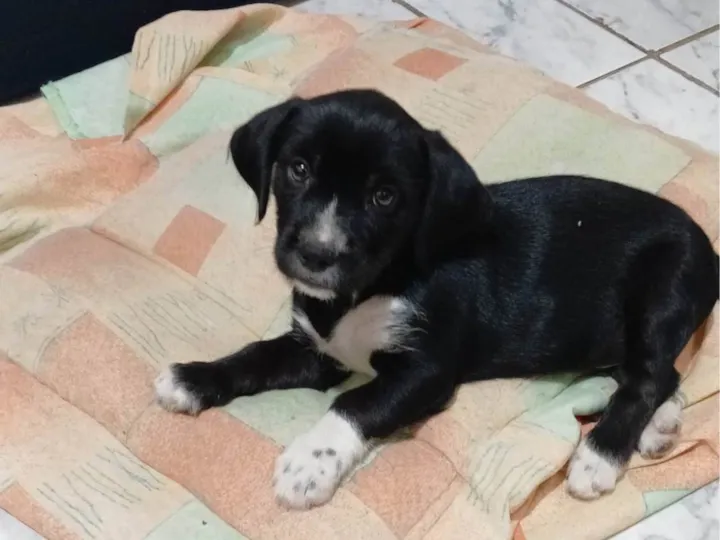 Estamos à procura de um lar amoroso para um adorável filhote de cão macho, da raça SRD (Vira-Lata). Com a pelagem totalmente preta e patinhas brancas, ele é uma fofura irresistível para encher de alegria qualquer ambiente. Ainda tem menos de dois meses de vida, garantindo que você tenha a chance de acompanhá-lo em seu crescimento e desenvolvimento.
