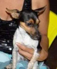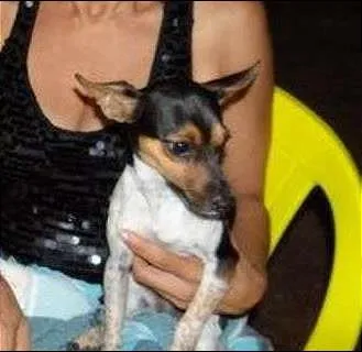 atende pelo nome de Messi, pinscher(mistura de fox paulistinha), macho, tem o lado da orelha direita cortada na ponta, branco com manchas pretas e algumas manchas marrom claro, senti frio a noite, so dormia na cama, come ração e comida, não gosta que bate palmas e nem os pés perto dele. É apaixonado pela minha mãe e ela por ele, a mesma esta muito triste e sofrendo. Ele desapareceu dia 19.09.2015 as 07:30hs na rodoviária de Cuiabá/M, saltou do carro e correu sentido bairro Araés, Alvorada ou foi para algum bairro próximo a rodoviária.