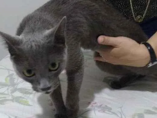 Procuramos o dono desta menina! Gata cinza de olhos amarelos, super dócil e com muito medo. Encontrada em 08/01/19 no Cond. Água Marinha no bairro Terra Nova em Cuiabá.