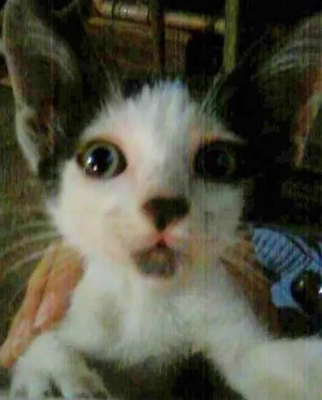 Bicó é um filhote que apareceu na porta da minha casa, tem o rabo amputado, é muito carinhoso, dengoso e fofo. O rabo está sendo tratado, e por já ter uma gata, não posso ficar, pois a mesma não aceita o filhote.
