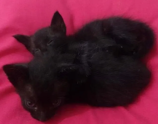 Procuramos donos para dois gatinhos fofos achados abandonados na rua. São dois machos de pouco mais de dois meses (provavelmente), de pelagem preta e olhinhos verdes. São muito lindos, brincalhões e carinhosos.