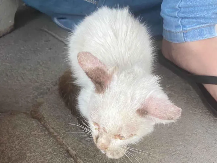 Ele nasceu na escola onde frequento, mas a mãe o deixou , nesse momento ele se encontra bem doente e fraco , só ossinho . Gostaria muito que vocês o resgatassem esse filhotinho