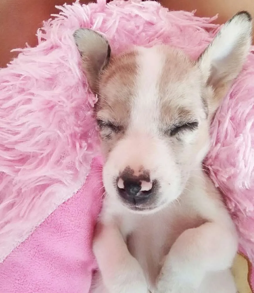 Eu a encontei na rua junto com seis irmãos , já consegui doar quatro , mas agora preciso doar duas fêmeas : uma branca e uma marrom .