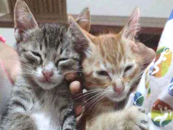 2 gatos machos encontrado abandonados na rua atrás de um dono, doces e muito brincalhão.