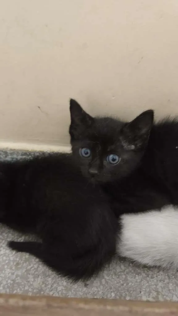 Gatinho lindo , cor preta, de olhinhos azuis, vai ficar lindo quando crescer. Se apegue a esse serzinho lindo que vai lhe dar amor e carinho. Dê um lar a ele e receberá bençoes de alegrias, porque é um bebê fofíssimo e muito brincalhão.