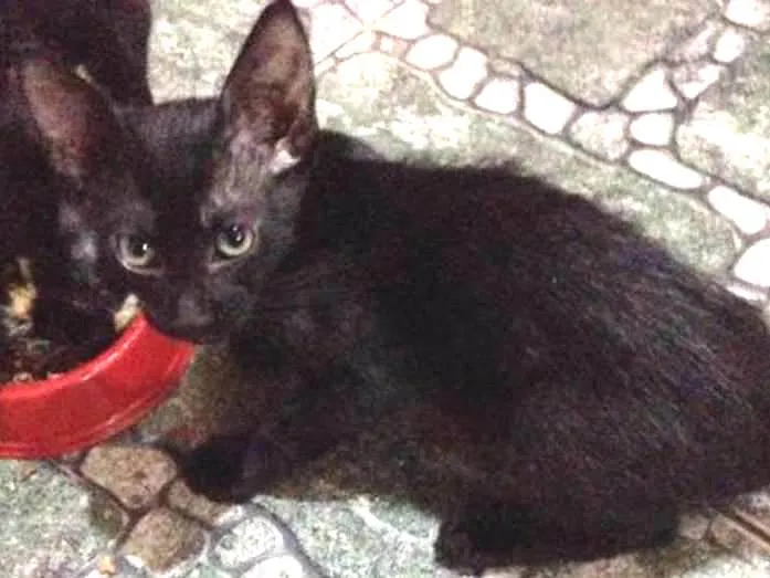 Adote um gatinho preto. Ele fez 3 meses em 16 de junho (2017), já está vermifugado (2 doses. a 3ª é daqui ha uns 2 meses). Ele é caçador, esperto, brincalhão e carinhoso. Vou dar um pouco de ração, um pacote de petisco de frango e um pouco de shampoo de gato (mas ele não é fan de banho). Ele nasceu de uma ninhada de 3 filhotes. vou ficar com 1, minha tia com outro, falta alguém adotar esse. O chamo de Midnight(=meia-noite). Gostaria muito de ficar com ele mas minha mãe não deixa. Contato: 98039-0230