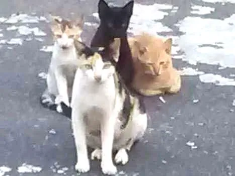 É uma família, mãe e três filhotes. Moram na rua, e alimento todos os dias, vou mudar, não posso adotar. Gostaria muito de vê-los em um lar. Já tenho 3 cadelas e uma gata.