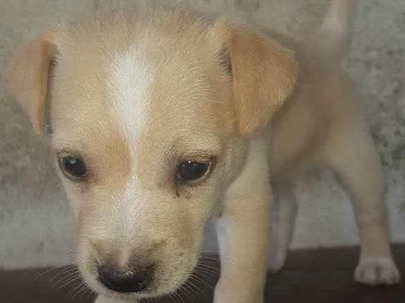 Cadela com um mês de idade, cor bege pelagem Lisa, vira lata.