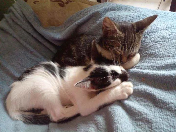 Dois deles são filhotes da minha gata, o branquinho apareceu no quintal da minha casa e ela adotou como filhote dela, já tinhamos doados, mas um foi devolvido( pois ele era muito espertinho e bagunceiro rsrs) e o outro pegamos de volta, pois ele estava sofrendo maus tratos e passando fome.