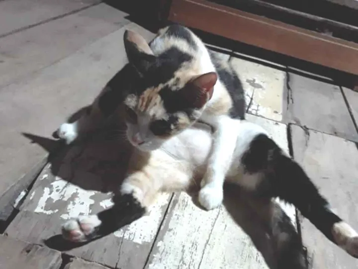 Ela apareceu aqui em casa, todo mundo gostou muito dela e resolvemos adotar, porém morávamos na casa da minha vó, crescemos e nos mudamos, mora só ela agora e ela não pode mais ficar com a gata, ela está com dois filhinhos