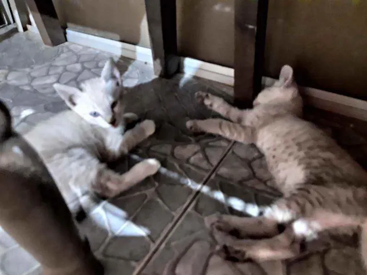 Uma gatinha teve filhotes na casa da minha avó, mas ela não quer ficar com eles. São dois irmãozinhos. Acho que é um macho e uma fêmea. Mas não tenho certeza, eles nasceram em julho. Estão com três meses.