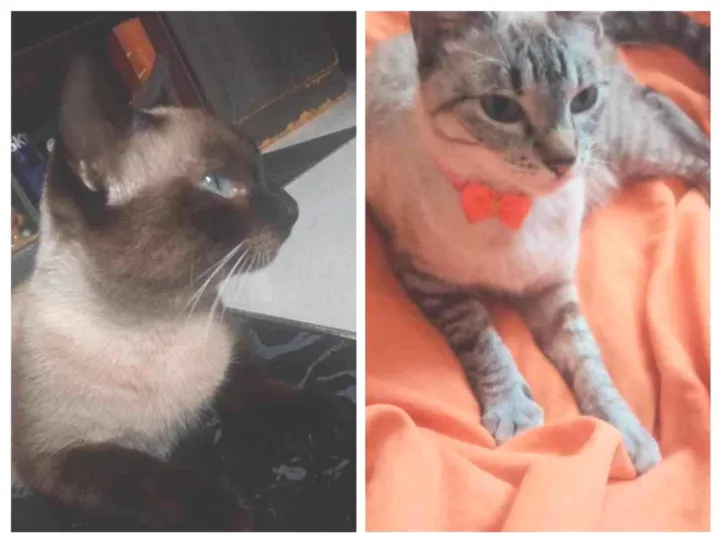 Sakura e uma gata branca com traços cinzas e olhos azuis, Hinata e uma gata siamês marrom com preto e tem olhos azuis. Ambas são irmãs então tem q adotar as duas.