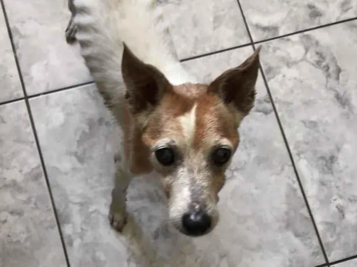 Branco com marrom, pelo baixo. Está muito magro porque está em tratamento renal e tomando medicamentos, já estava melhorando quando fugiu pelo portão do prédio. Foi visto pela última vez, logo após sair de casa, na calçada do Mangabeira Shopping, perto da Santa Oca que fica no contorno entre a Secretaria de Segurança e referido Shopping. Ele precisa ser encontrado urgentemente para que seu tratamento não pare, pois isso pode ser fatal.