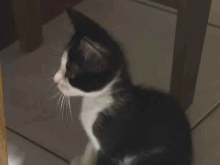 Este encantador gatinho macho da raça SRD (vira-lata) está disponível para adoção. Com apenas dois meses de vida, ele possui uma pelagem branca e preta que é simplesmente adorável. Este pequeno amigo é vermifugado e tem um temperamento dócil e calmo, o que o torna perfeito para qualquer lar. Ele é sociável, tanto com outros gatos quanto com crianças, e se dá bem até mesmo com desconhecidos e idosos.