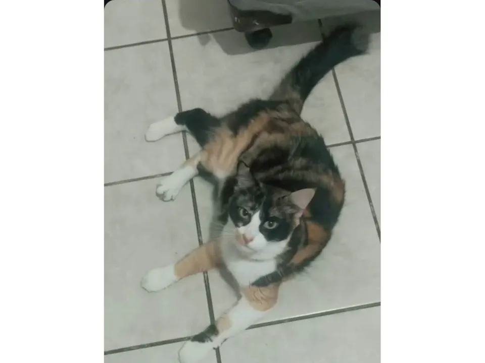Conheça a Jimina, uma gata fêmea que está a dois anos com a atual dona, da raça SRD-ViraLata, com uma pelagem rajada encantadora. Essa gatinha é grande e exibe orgulhosamente seu rabo comprido e seus olhos amarelos hipnotizantes. Seu pelo macio e longo é uma mistura de branco, preto e amarelo que faz dela uma gata única e especial.