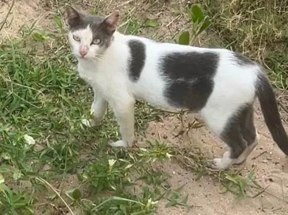 Gatinha vive no calçadão de Cabo Branco, em frente ao hotel Litoral, muito carinhosa e dócil, corre risco além de viver nas ruas, e atravessa a rua em busca de sombra.