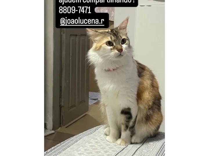 Petrúcia é um amor de gata, muito dócil e carente. Ela estava usando seu colar de miçanga colorido quando desapareceu. Se você a viu ou tem alguma informação, por favor, entre em contato. Sentimos muito a sua falta e estamos ansiosos para tê-la de volta em segurança.