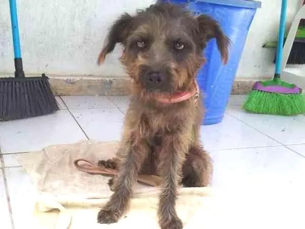 Cadela encontrada na PE 27 estrada de Aldeia, km 4 dia 29 de novembro de 2018 as 10:00. Animal encontrado com coleira peitoral na cor rosa/branco. Temperamento dócil, pequeno porte, mestiça.