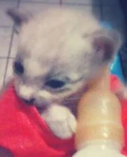 Encontrei essa gatinha (e mais 3 irmãozinhos) abandonada na rua, recém-nascida. Venho cuidando deles ha duas semanas, mas não tenho condiçoes de ficar com eles, já crio duas gatas (que tirei da rua tambem). A pessoa que for adotar precisa ter amor e carinho, e vai receber carinho dela tambem. Entrar em contato nos numeros:
