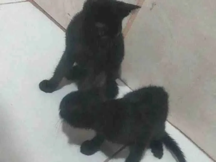 Conheçam Meia Noite e Luna, dois gatinhos SRD-ViraLata de pelagem preta, com menos de 2 meses de idade e porte pequeno, que estão à procura de um lar amoroso para chamar de seu. Eles têm um temperamento dócil, brincalhão e carente, o que os torna companheiros perfeitos para qualquer família. Meia Noite e Luna se ad