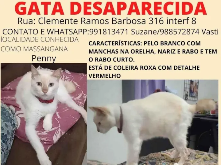 Gata castrada, sumiu dia 2, num sábado.