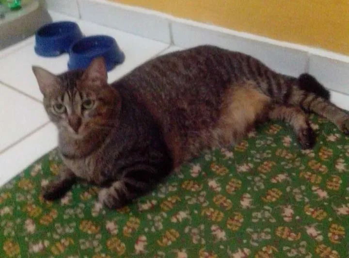 Florzinha foi uma das poucas sobreviventes dos 40 envenenamentos na beira rio,foi resgatada e hoje está castrada, vacinada e vermifugada. Muito dengosa,calma e preguiçosa. Ótima companheira.