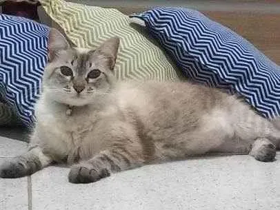 Safira está sumida desde a última sexta-feira, 11/11/2022. A pelagem dela é champanhe com manchas cinza escuro pelo corpo, têm o rabinho bem flocado, faz tratamento e uso de medicamentos diariamente. Ela é uma gatinha muito domesticada e dócil e está usando uma coleira vermelha com pingente prateado.