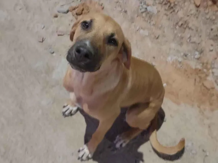 Cadelinha de rua, tem mais duas irmãs da mesma faixa de idade. É super dócil e carente. Encontra-se na Rua 04 do Loteamento Colinas do Rio, bairro COHAB São Francisco, Petrolina - PE.