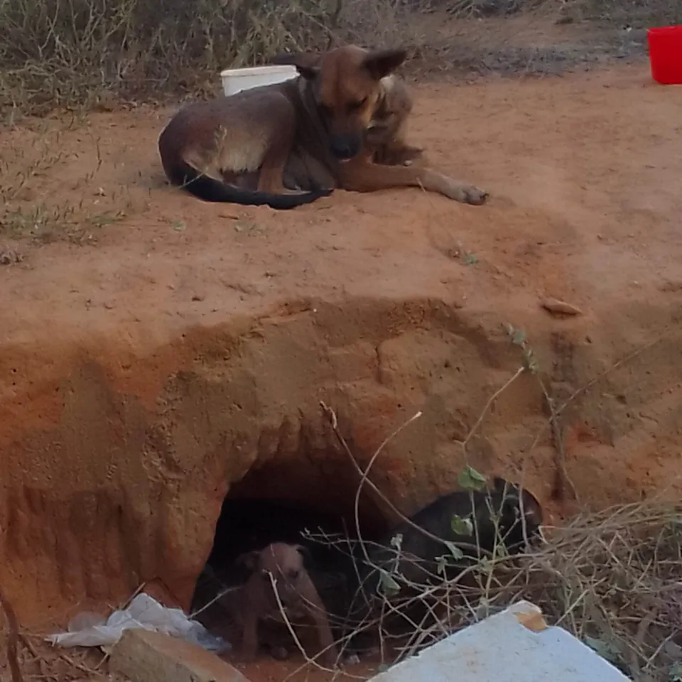 Venho pedir ajuda. Uma cachorrinha deu cria aqui no meu bairro eu sempre passo e vejo esses dois filhotinhos com ela, queria muito ajudar mas já tenho 4 gatos e minha casa não tem quintal. Hoje coloquei comida e água pra ela, acredito que alguém esteja colocando também. O que me preocupa mais é o fato deles estarem próximo a uma rua que passa ônibus e ficarem brincando ali perto. A mãe deles é um pouco medrosa mas calma, e os filhotes parecem ser calmos também.