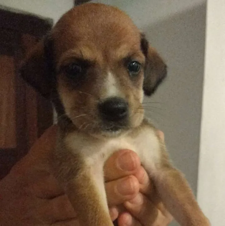 Filhote foi abandonada na frente da minha casa e está provisoriamente comigo. Já tenho dois de grande porte e não posso ficar com ela.