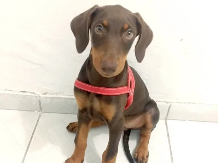 Filhote de Dobermann, 3 meses de idade, fêmea, muito brincalhona e muito parceira. Infelizmente não estou podendo ficar com ela por conta da minha rotina profissional.