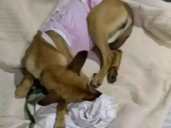 Cachorra docil, SRD caramelo, procura um dono,que goste de dar muito carinho, meiga, medrosa, acho que já apanhou muito. Moro em condomínio, porém, não pode ficar. Castrada hj. Recuperação