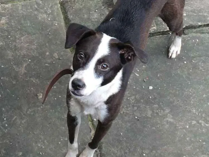 Cachorro apareceu no sao joao , na porta de minha casa. É preto e branco ( pêlo curto) , muito meigo e mas neste momento tem medo. Estou a fazer os possiveis para sempre ele comer e nao passar fome. Ele apareceu aqui em apipucos , perto do açude. Quero encontrar seu dono ou uma nova casa para ele ... ajudem o nosso amigo pf!