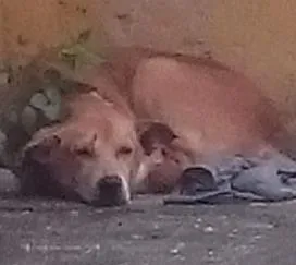 Cão achado no dia 06/11/2016, na Encruzilhada. Cor amarela, coleira feito uma corrente. Está perdido e assustado. Um carro deve ter acertado ele. Não quer sair pra rua de jeito nenhum. Procurando os donos ou alguém que queira dar muito carinho a ele/ela.