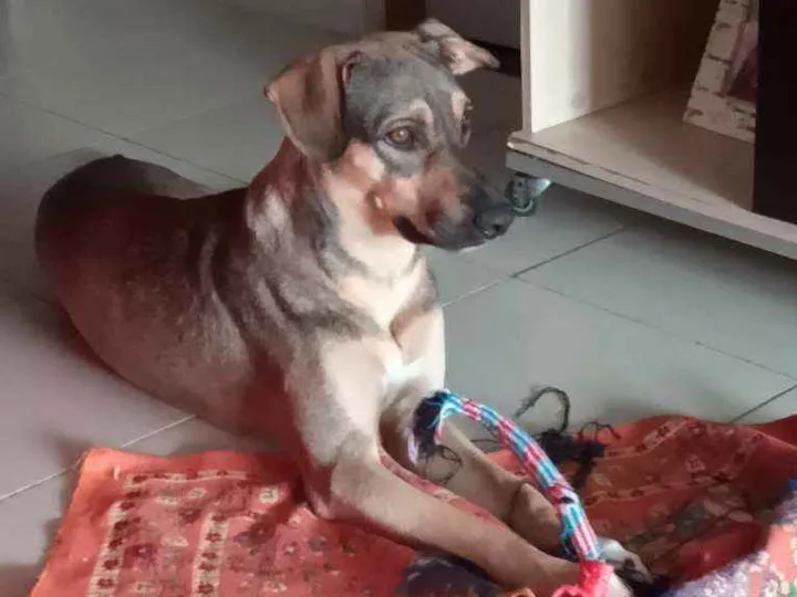 Mob é um cachorro de médio porte, um pouco agitado, ele ta usando um peitoral azul, e foi perdido pela BR-101 proximo a CADAN, ele pode estar na região proxima à estação barro