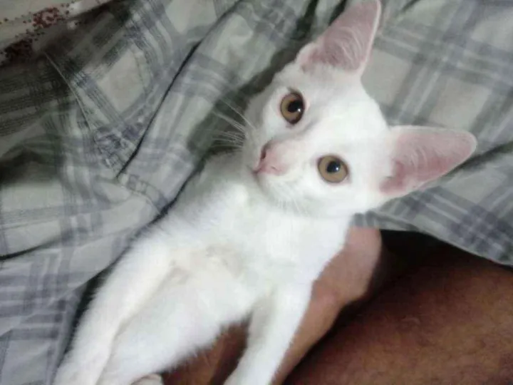 Nasceu em 01 de Julho de 2019, tem 3 meses, come ração, patê, é vacinado contra raiva, tomou remédio contra pulgas e devidamente vermifugado. Seu nome provisório foi dado devido a sua cauda ser dobrada em 2 partes, desde que nasceu.