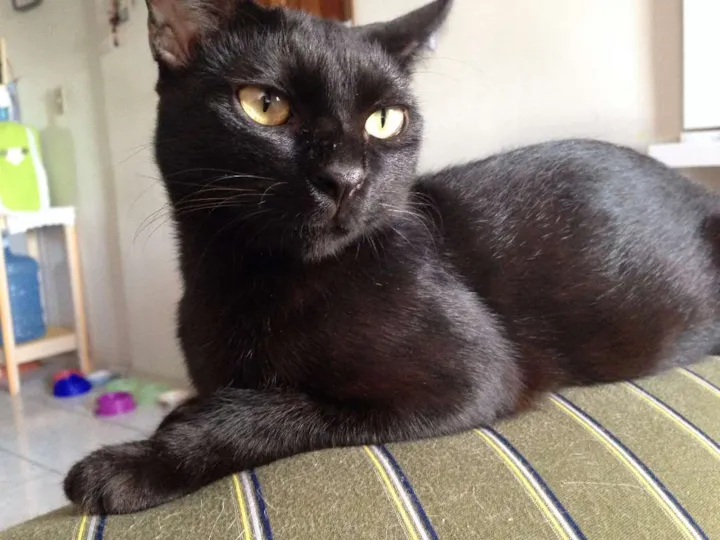 Essa linda gata negra de arrepiar se chama Dara. Prontinha para um lar definitivo.