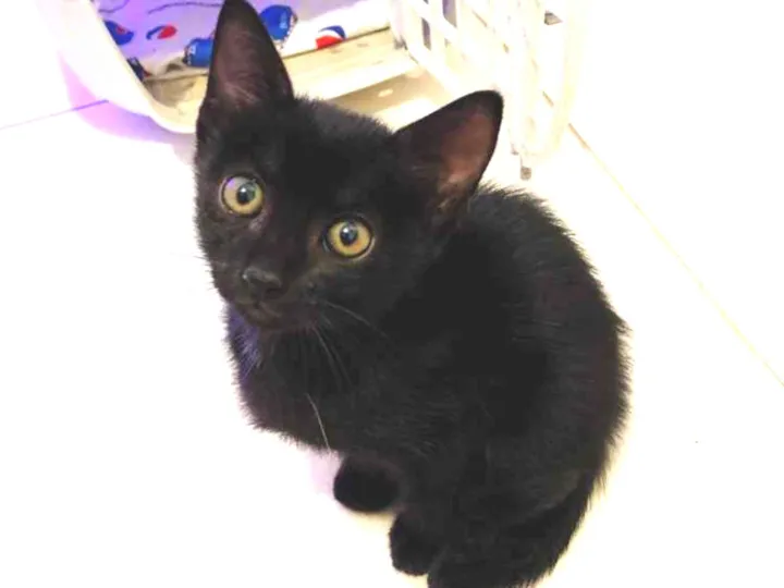 Resgatei um gatinho preto bebe. Estou com ele ate encontrar alguem que queira adota-lo. Nao posso ficar pois ja tenho dois gatos. Esta aparentemente saudavel mas vou leva-lo ao veterinario para avaliar.