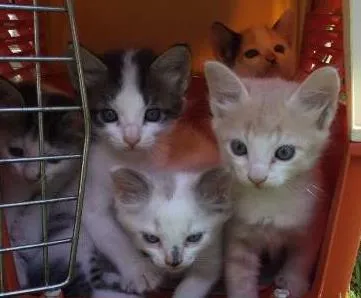 Gente, estes gatinhos de 2 meses estão pra adoção. Resgatei eles e a mãe, que já está ESTERILIZADA e tem +\- 1 ano e é um DOCE... Já tenho MUITOS animais e preciso doar estes... Me comprometo com a castração dos filhotes (se a pessoa não puder). Eles já estão vermifugados e usam a caixa de areia. POR FAVOR ALGUÉM DE BOM CORAÇÃO ENTRE EM CONTATO!!!!!!!!