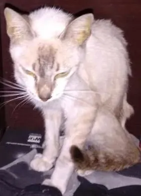 Milk foi resgatada das ruas muito fraquinho e sem conseguir andar direito de tão desnutrida! Ela é uma gatinha mansa e muito carinhosa. Fica querendo brincar, mas não tem forças. Espero que alguém possa ajudar Milka e dar um lar, amor e carinho pra ela!!!