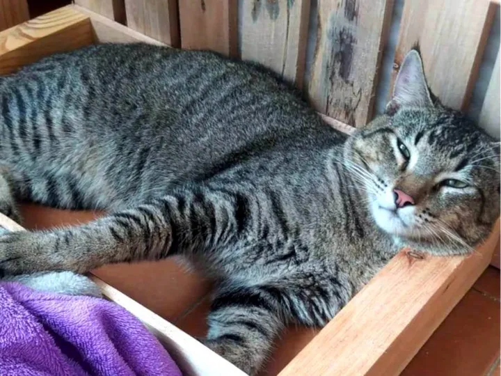 Pancinha é um gato bem grande, mesmo sendo adolescente, buscando uma família para não voltar pras ruas.